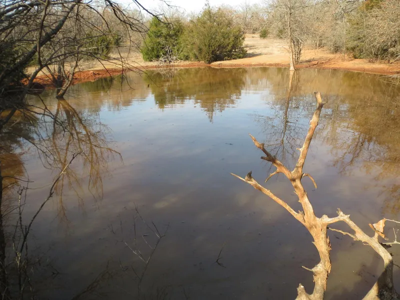 Lots of terrain... seasonal creek beds, draws trees, some clearings and a spring fed pond. Old homestead is not habitable and needs bulldozed, (hence the great price)! Tract is fenced and livestock is present. Old water well is not guaranteed but, is used to water stock. Rural Water District #8 is available at road to purchase a water tap. PEC electric, Washita is a trash pick up and Chickasaw Telephone Company for a land line. Realtor thinks Hughes Net is best for internet services.