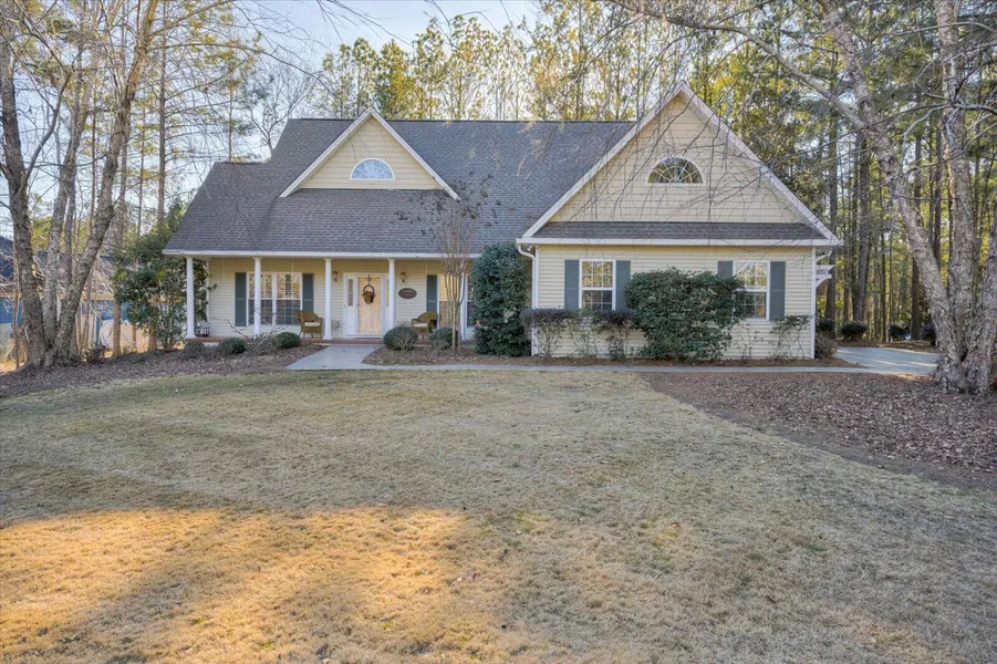 Welcome to your dream home in the highly sought-after Shenandoah section of Savannah Lakes Village! Nestled on a picturesque corner lot at the end of a quiet cul-de-sac, this home offers the perfect blend of serenity, convenience, and style. Just steps away from the community dock, you'll enjoy the best of lakeside living in a vibrant, amenity-rich community. From the moment you step through the front door, you'll be captivated by the thoughtful design and open floor plan. Imagine gatherings in the spacious great room, which flows seamlessly into the dining area, sunroom, and screened porch—all with tranquil views of the lake. Whether sipping coffee in the sunroom or hosting friends on the screened porch, this home invites you to relax and soak in the beauty of your surroundings. The kitchen is a chef's paradise, featuring custom wood cabinetry, a wall oven, a gas/propane cooktop, and a sink with a stunning window view. It's the perfect space to create culinary masterpieces while staying connected with family and guests. Down the hallway, retreat to the primary suite, your private oasis complete with a generous walk-in closet and a luxurious en-suite bathroom. This spa-like space features dual vanities, a walk-in shower, and a private water closet. Two additional bedrooms and a full guest bathroom provide ample space for family or visitors. Need extra storage? The upstairs room above the garage, accessible via walk-up stairs from inside the home, adds over 200 square feet of versatile space—perfect for storage, a hobby room, or a quiet retreat. The beautifully landscaped yard showcases mature trees, lush shrubs, and an established lawn, creating a peaceful outdoor haven. With over 2,000 square feet of living space and custom craftsmanship by renowned builder Merle Kolberg, this home is truly move-in ready. Don't wait to make this house your home. Schedule your private showing today and experience the charm, comfort, and convenience of Savannah Lakes Village living!