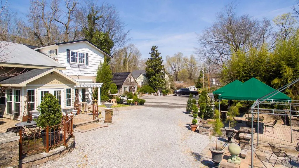 10+ acres with several buildings; currently being used as a nursery and retail shops; seller will divide.