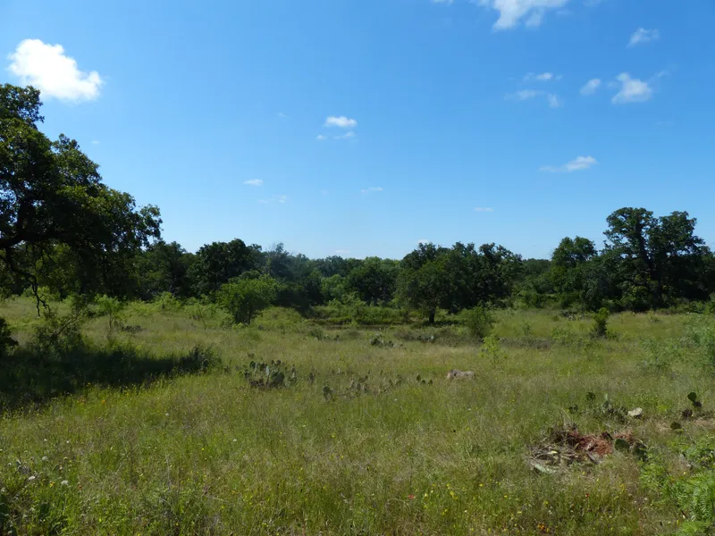 About 75 acres of the land is heavily covered with a mix of algarita, persimmon, mesquite, cedar, and live oak. The east end is more open with large, to very large, live oak and native pecan along the creek. Also, it is not unheard of to find Topaz in the creek beds of this area.