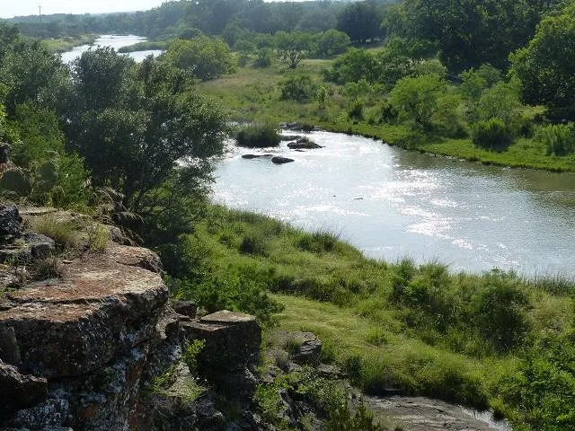 Water. Water is the greatest asset on this ranch. The pretty San Saba River flows for over 4,900 feet along the north side of the ranch. The river has places that are still water for fishing and kayaking, and some nice gentle rapids as well. Most of the river bottom is solid bedrock, making for pleasant wade fishing. A unique feature is a natural ford in the river.