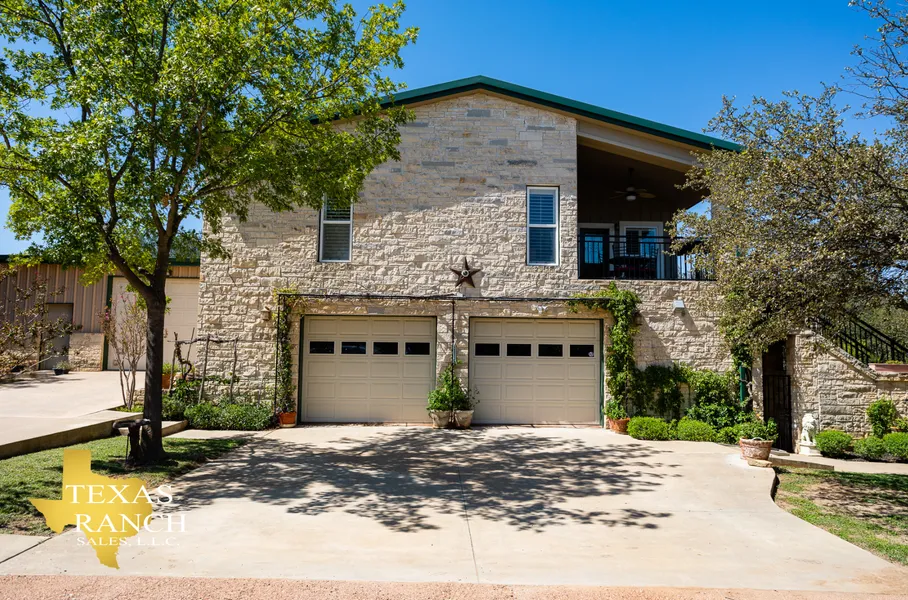 A gravel ranch road leads from the electric gated entry to the main home. The beautiful multilevel home is an impressive 9,000 square feet with four large bedrooms and four full bathrooms. It is a stunning combination of ranch-style rock and steel construction with 3,000 feet of living space that features incredible vaulted ceilings with exposed wood beams, hardwood floors, huge windows, and three incredible stone fireplaces; two of which have built-in grills. The upper level of the home offers a large deck that overlooks a meticulously landscaped yard with scattered oak trees.The lower level of the home has a 3,000 square-foot workshop with stained concrete floors and an office, as well as another 3,000 square-foot garage area with roll-up doors on both sides that allow for equipment and implements to drive through with ease. Another 1,600 square-foot hunting cabin with a stone fireplace overlooks a 2 acre pool on Brady Creek and offers overflow accommodations for guests and hunters alike. Additional improvements include a hay barn, corrals, well house, and a shed at the creek.