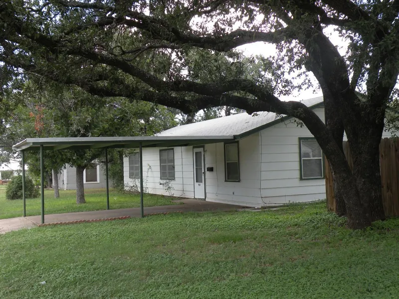 The home is located on a large corner lot and has a single carport attached. The roof is composition, siding is masonite. There is also a metal storage building in the backyard that is situated on a slab. The lot has several large Oak trees for shade. This home has lots of potential.