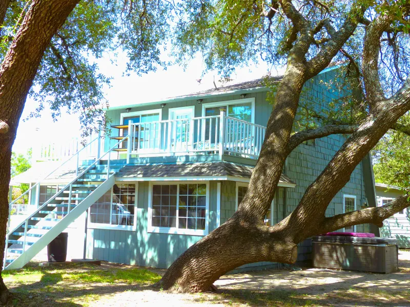 First story has two large bedrooms with a full bath plus a large living area. The second story can be accessed from inside or out and features another smaller bedroom, a full kitchen with dining and additional living area which exits onto a large deck facing east for shade and comfort during the evening hours. Much remodeling. Two new mini-split units. Ceiling fans throughout. Tile upstairs and laminate downstairs with carpeted bedrooms. New windows all aroun...