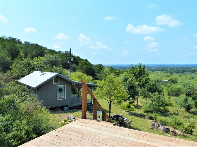 This quiet and secluded little get-a-way is nestled into the hills overlooking the San Saba River valley. Twenty-mile, panoramic views from this location are outstanding, and, it is mostly surrounded by large and very large ranches. Easily accessed by well maintained county road 208, this property has a sixty foot wide lane that leads up to the main parcel. It features two cabins and one enclosed storage building. One which is 625 square feet, including the porch, and one which is 325 square feet with a 300 square foot, partially enclosed garage. Both cabins have cast iron stoves, window units, kitchens, ceiling fans, and bath rooms. One equipped with a shower/tub and the other with only a shower. Both are extremely well built. A 430 foot deep water well is located within close proximity of the cabins. It is rated at 40 g.p.m. with no draw down. Also, there is one water catchment cistern that feeds troughs for wildlife.