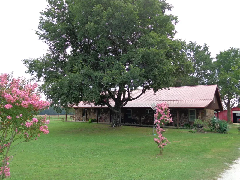 THE HOME WAS BUILT IN 1995, AND HAS A NEW METAL ROOF, NEW WINDOWS, NEW COMPLETE HEAT & AIR SYSTEM, AND NICE APPLIANCES IN THE KITCHEN. A CARPORT IS BUILT RIGHT OFF THE BACK MUD ROOM ENTRY, AND THE LANDSCAPING AROUND THE HOME IS VERY WELL GROOMED AND MAINTAINED. THE HOME IS ROCK EXTERIOR, WITH A CEDER LOG INTERIOR THROUGHOUT THE HOME. ABSOLUTELY GORGEOUS DETAIL TAKEN IN EVERY SINGLE ROOM OF THE HOME. AN OPEN FLOOR PLAN, VAULTED CEILING LIVING ROOM, WITH A CUSTOM BUILT DISPLAY BUILT FOR SHOW! ALL ELECTRIC, WITH A NICE PROPANE HEATER IN THE LIVING ROOM. RURAL WATER, AND UTILITIES ARE LOW! PIPE FENCED ENTRY AS WELL AS A PIPE FENCED YARD AROUND THE HOME.. THERE IS A CIRCLE DRIVE ALL GRAVELED AND HAS HWY FRONTAGE OFF OF HWY 3. FRONT AND BACK PORCHES THAT SPAN THE LENGTH OF THE HOME, WITH BEAUTIFUL HUGE OAKS, AND FLOWERING BUSHES COMPLETE THIS CATTLEMAN'S DREAM LIVING.