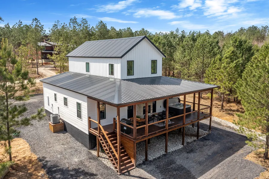 This newly constructed three bedroom/two bathroom cabin just hit the market and it’s one that you don’t want to miss! It is turnkey ready and located in the West Fork Development on Hackberry Flat Trail in Hochatown. This modern farmhouse cabin sits on a little over an acre lot at the end of a cul-de-sac surrounded by towering pines and a natural flowing creek. This serene spot makes for a perfect escape. From sitting on the back porch soaking up the view to enjoying the hot tub, or gathering around the fire pit for s’mores, this cabin is exactly where you want to spend your vacation or weekends away!