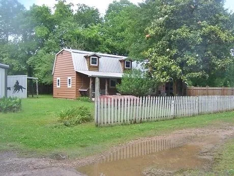 Located in Valliant, OK. at the end of a dead end street. This home features a circle drive with a white picket fence and a large front porch. It is a 2 bed, 2 bath, 2 story home with a large living room, kitchen, and storage room. The bedroom and bathroom upstairs run the full length of the home.