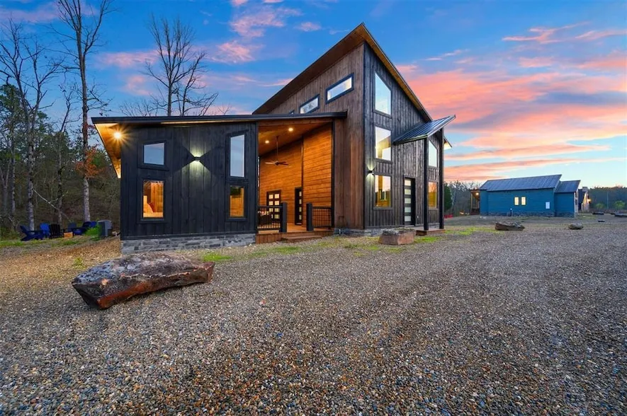 Across State Lines is nestled among the tranquil waters. This charming cabin, sits on the edge of a picturesque creek, offering modern comfort. As you approach the property, you're greeted by the gentle murmur of the creek, its crystal-clear waters winding their way through the lush greenery that surrounds the 1 acre (MOL ) lot. The cabin itself is a cozy haven, with a modern exterior that blends seamlessly into the natural beauty of the surroundings. Stepping inside, you're struck by the warm and inviting atmosphere. The spacious living area features vaulted ceilings, adding to the charm of the space. Large windows offer panoramic views of the creek and the forest beyond, allowing natural light to flood the interior. The open-plan layout connects the living area with the kitchen and dining space, creating an ideal setting for entertaining guests or simply relaxing. The cabin boasts ...