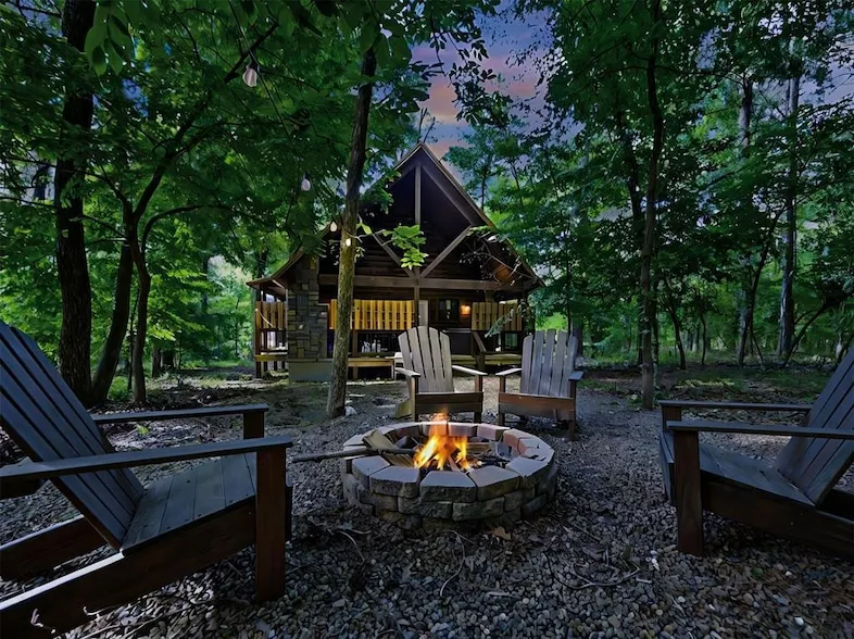 The Stunning Bear Den Cabin is the perfect getaway and luxurious cabin experience. Nothing missing and so many gorgeous details make this your ideal retreat for a weekend or a week! With rustic and chic decor, it's perfect for a romantic getaway. In the Timber Creek Trails area, this cabin is strategically placed in the woods, but also so close to the State Park, River, Reservoir, Hiking and Hochatown nightlife, shopping, and wineries. It is perfect for two or four! The space This rustic cabin is nestled in the woods and offers a wonderful getaway. There is a great spot out back to build a fire in the fire-pit, sit around in Adirondack chairs roasting smores. Located in the Timber Ridge area of Hochatown, you are close to all the attractions and beautiful Kiamichi wilderness!