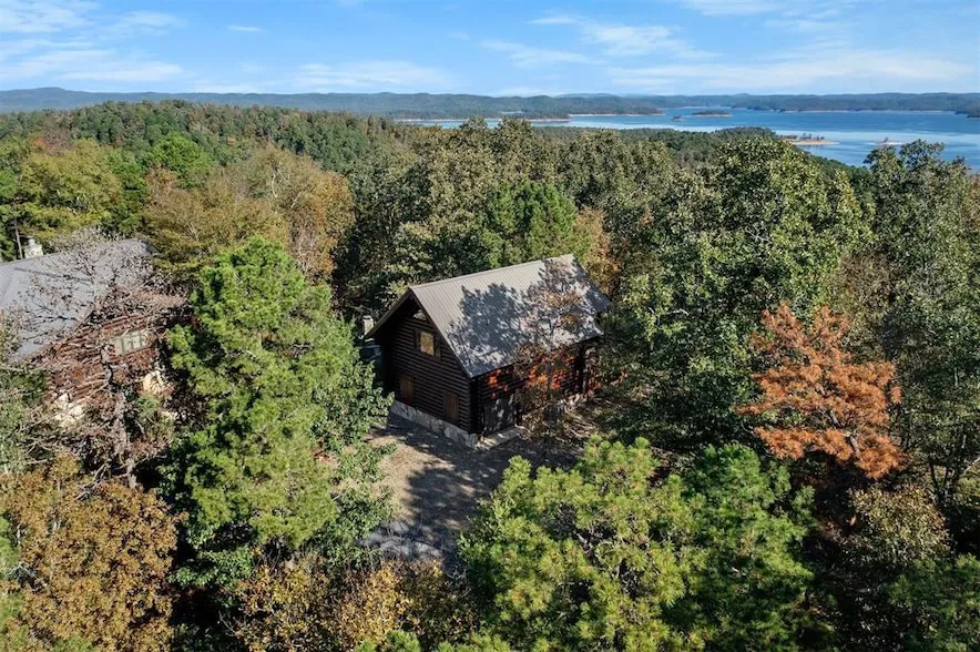 3 acres, 2 cabins with seasonal LAKE VIEWS! Combined living offering 4 beds and, 3.2-baths with breathtaking lake views framed by the Ouachita National Forest. The main house spans two levels, with a thoughtfully designed interior. On the upper level, you'll find a half bath, and a master suite with French doors that open to one of the multiple decks. The lower level of the main house offers another bed, a full bath, a second living area and a game room that would make a perfect bunk and game room. The one-bedroom cabin named Skyline Lodge, offers two levels for maximum views and presents a lower-level master suite with a hot tub on the covered patio for ultimate relaxation. With a comfortable living area, a well-equipped kitchen, and a loft, allowing guests to enjoy their own private retreat. Whether you're seeking a serene escape or a lucrative investment opportunity, this cabin has it all. Don't miss out on the chance to own this extraordinary cabin with captivating lake views. One bedroom cabin Skyline Lodge currently has a 71% occupancy rate. Main house has never been on the rental market.