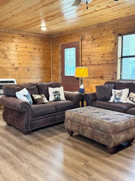Discover the perfect getaway in this 1-bedroom, 1-bath cabin in Broken Bow, offering 720 sq. ft. of cozy living space. Nestled on 2.44 unrestricted acres with Highway 259 frontage, this property is next door to Hochatown Trails and is just minutes from Broken Bow Lake and the vibrant heart of Hochatown, where you'll find top-rated restaurants and activities. The open floor plan creates a welcoming atmosphere, complemented by two new mini-split units for efficient heating and cooling. This well-maintained cabin is in mint condition, making it ideal for a private retreat or a lucrative short-term rental opportunity. Adding to its appeal, the property includes a 30'x30' shop with a concrete floor, electricity, and a large roll-up door-perfect for storing a boat or camper. Whether you're looking for a peaceful escape or an investment opportunity, this cabin offers the best of both worlds in one of Oklahoma's most sought-after locations. Don't miss this rare find-schedule a showing today!