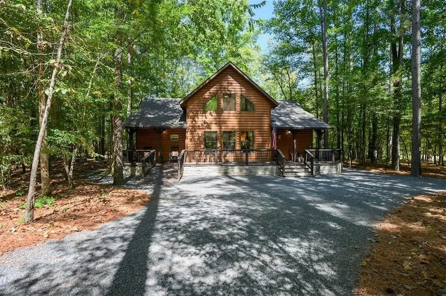 Quiet & secluded cabin tucked away on a wooded lot. Just minutes north of Hochatown, this property offers great convenience to town, Broken Bow Lake, & Beavers Bend State Park. Head indoors where you'll find a sun-filled living room with soaring ceilings, stone fireplace, & stunning natural wood work throughout. A cozy kitchen sits just off the living room, featuring a breakfast bar, granite counters, stainless appliances, & ample storage space. Both bedrooms reside on the main floor, with an office or perfect flex room perched upstairs. Outside, you will find a swath of activities & opportunities to relax! Grill out under the sprawling porch, take a nap in one of the hammock or indulge in a relaxing evening soaking in the hot tub. Come experience all that Broken Bow has to offer! All furniture and items included on purchase. Buyer to verify all information in listing