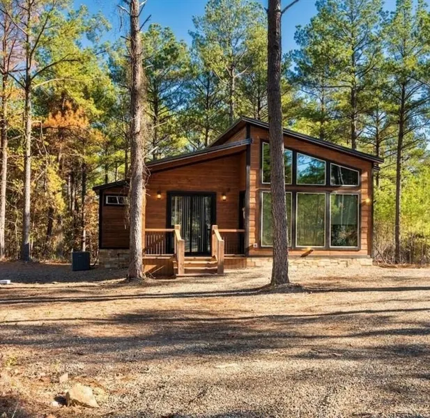** Charming Cabin Retreat on 1.38 Acres in Hochatown ** Ready for your peaceful cabin escape in the woods? This beautiful 2-bedroom, 2-bath cabin offers the perfect blend of comfort, privacy, and modern rustic style - all on 1.38 wooded acres, just 20 minutes from Hochatown's top attractions. Step inside to discover a bright and open living area featuring floor-to-ceiling windows, vaulted ceilings, and a beautiful stone gas fireplace - the perfect place to unwind after a day of adventure. The open-concept kitchen includes custom cabinetry, white granite countertops, and white subway tile backsplash. Stainless steel appliances and a large kitchen island with seating, ideal for gathering with friends and family. Both bedrooms are designed as private suites, each with its own en suite bathroom, double vanities, and beautifully tiled showers. One suite offers direct access to the expansive back deck, where you'll find another outdoor stone fireplace, a cozy sitting area, and space for alfresco dining - perfect for enjoying the crisp mountain air. Follow the stairs down to a private cabana area featuring a hot tub, perfect for relaxation under the stars. Just beyond that, a firepit area invites guests to make s'mores and lasting memories around the fire. Outside, the large circular driveway offers plenty of parking and easy access for guests bringing boats or trailers. With its concrete foundation, easy-maintenance finishes, and inviting design, this cabin is not only an ideal personal retreat but also a strong short-term rental opportunity in one of Oklahoma's most desirable vacation destinations.