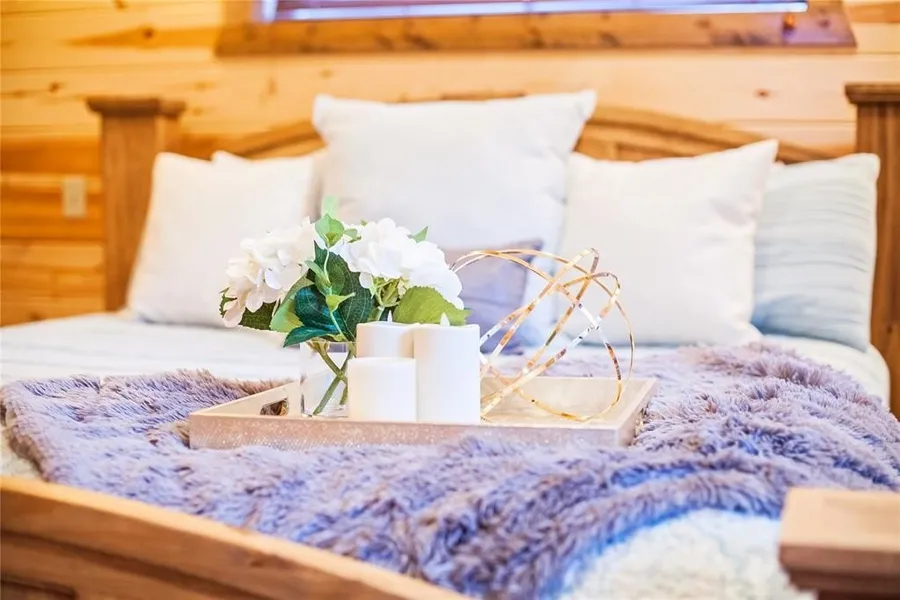 Welcome to "Backwoods" a perfect blend of rustic charm and luxury in this single story, one-bedroom cabin nestled in the highly sought-after Timber Creek South development. This spacious cabin comes fully furnished, turn key ready and income producing. Enjoy the bright decor that compliment the rich wood tones creating an inviting stay! Cozy up next to the gas fireplace in the living area with your favorite movie or book. Open concept kitchen to entertain while making your favorite meals - the ideal spot to relax after a day of exploring. Watch your favorite movie in the oversized king bedroom. The spa-inspired bathroom is a true retreat, featuring a soaking tub, double vanities, and an oversized walk-in shower—perfect for unwinding in total comfort. Outside, enjoy evenings by the gas fireplace with beautiful wooded views, grill your favorite foods, soak in the hot tub, or challenge fri...