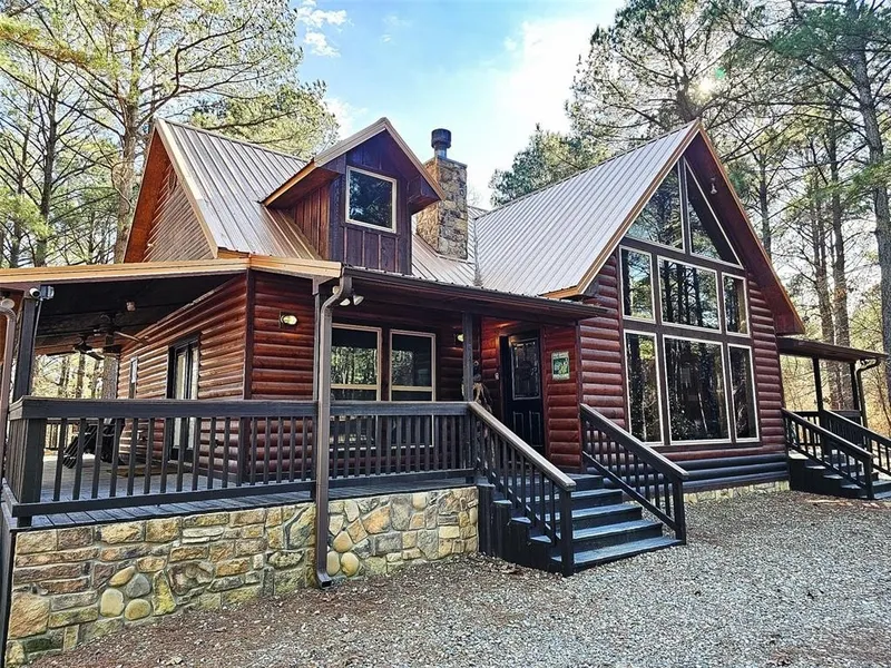 Experience this terrific traditional 4-bedroom, 3.5-bath cabin with a beautiful copper roof. Lot 1 has a total of 2.07 acres. This lot has been split to offer the advantage of building another STR cabin on it!! The surveyed split allows 0.58 acres to be used for another cabin build. The current cabin sits on 1.49 acres that exudes a cozy, rustic charm with a beautiful stone fireplace in the living room and a stunning wall of windows that bring the outdoors in. The open floor plan creates a welcoming flow, and the kitchen is equipped with sleek stainless steel appliances. There's ample dining space, including an island with seating for 4 and a dining table for 6. Sleeping 8 guests comfortably, the cabin also features a convenient half bath. There's plenty of room to explore, horseshoe pit for outdoor fun, plus a playset for the kiddos. Guests can relax around the firepit in Adirondack chairs or unwind on the spacious covered deck, which also features a brand-new hot tub. Perfect for families and groups this cabin makes a great STR with a perfect location. Fishing Bear is nestled in the heart of Hochatown, just minutes from popular spots like Grateful Head Pizza and Girls Gone Wine.