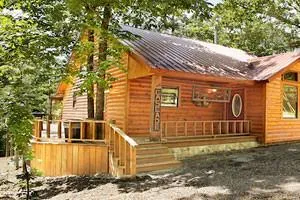This a a beautiful, cottage-style "Honeymoon" cabin for couples. The log and rock work fit in perfectly with the picturesque setting of the area. The open floor plan includes a grand floor-to-ceiling two-sided gas log fireplace that serves both the living room and bedroom, allowing for a romantic fire in both areas. Jacuzzi-style garden tub in the bathroom and a two-person hot tub on the back deck provide soothing relaxation. The side deck is accessed from the kitchen to allow cooking inside and grilling out. Beautiful Brazilian cherry hardwood floors and knotty pine tongue and groove walls are the perfect blend of visual texture. Couples staying in the Cascade will appreciate the close proximity to the popular activities at Beavers Bend State Park. Cabin is fully furnished, including full-sized washer and dryer, appliances, pool table, and hot tub. Ready to move in or for immedi...