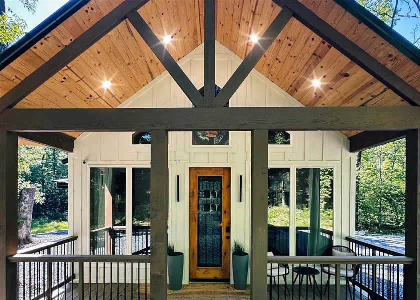 Welcome to The Bliss, a beautifully designed 1-bedroom, 2-bath cabin that perfectly blends modern farmhouse comfort and charm with nature. Set beside a tranquil pond and seasonal creek, this retreat offers the ideal balance of relaxation and adventure, near Hochatown’s most popular attractions and dining, including Mountain Fork Brewery, Shuck Me, and Okie Girls Coffee & Ice Cream. Inside, the open living area invites you to unwind with its striking wood accent wall, tile fireplace, and TV surrounded by comfortable seating. A wall of windows fills the cabin with natural light and scenic views. The fully equipped kitchen boasts stainless steel appliances, a gas stove with griddle, and an island with seating for two, perfect for morning coffee or casual dining. A dining table adds extra space for 6. The king bedroom features a private ensuite with a soaking tub and walk-in shower. Additional sleeping accommodations include twin bunks with a TV and kid-friendly seating area, along with a full guest bath featuring a walk-in shower. Step outside to the covered deck and enjoy the bubbling hot tub, outdoor fireplace, and grill. Gather around the firepit under the stars, or spend your day fishing, kayaking, or simply watching the ducks glide across the pond from the private dock. Whether you’re seeking a personal getaway or an addition to your short-term rental portfolio, The Bliss offers comfort, location, and natural beauty in one perfect package. Reach out to listing realtor for video tour!
