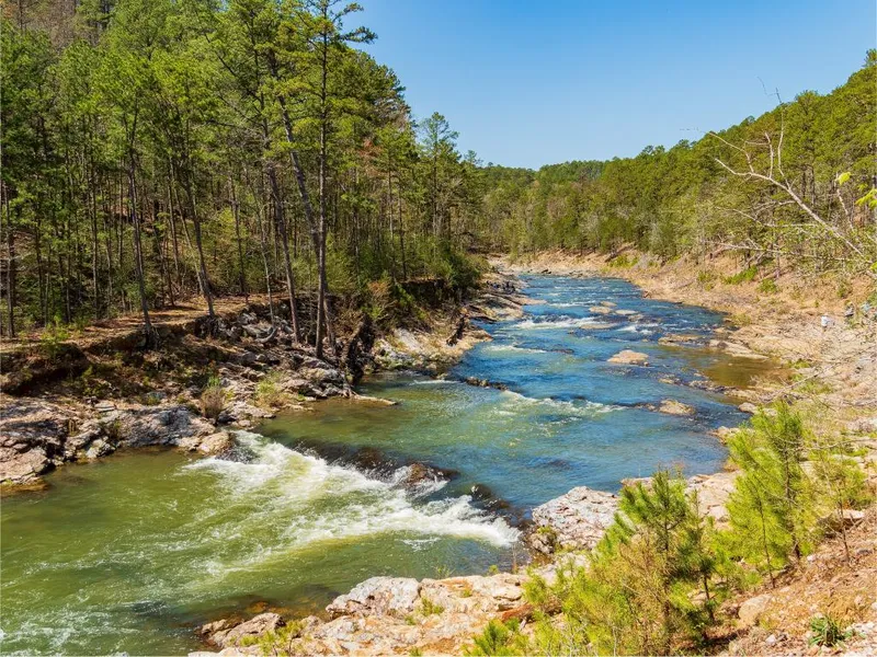 Escape to Broken Bow and Hochatown, Oklahoma in the Ouachita Mountains and cool off in the spectacular Mountain Fork River. Mountain Fork Resort has nearly one mile of riverfront on this renown River known for excellent fishing and kayaking. These beautiful properties are all easy to build riverfronts and river access estates featuring amazing community amenities. Mountain Fork Resort boasts amenities like no other community in Broken Bow or Hochatown featuring a 4+ acre Riverfront Park. The central feature of the Riverfront Park is a luxury Clubhouse and pool with pickleball court and a sand volleyball court also. From the Clubhouse you can enjoy a nature trail to riverfront where you can relax by a firepit at the water. Or let the kids enjoy the beautiful natural play area along the trail. If you want to cool off in the river there are two Riverfront Common areas with a dock and kayak launch. Build your dream home on these beautiful estates featuring excellent hard surface roads, underground utilities including water and an immaculate gated entrance to protect your investment.