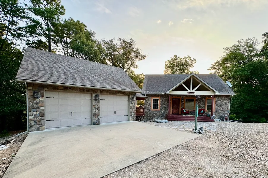 Welcome home. Tucked away in the serene landscape of the Ozark Mountains, this extraordinary property presents a unique blend of luxury, seclusion, and nature's splendor. Just a short drive from the bustling heart of Northwest Arkansas, this estate offers a tranquil escape while maintaining convenient access to local amenities. Adjoining the pristine Big Sugar Creek, the property boasts unparalleled access to its clear, flowing waters, creating a picturesque backdrop that enhances the allure of this magnificent home. As you pass through the gated entrance, a sense of privacy and exclusivity greets you, complemented by a park-like setting abundant with wildlife, including graceful whitetail deer. This custom-built home showcases meticulous attention to detail, with every element thoughtfully designed and crafted. From bespoke cabinetry to designer light fixtures and exquisite flooring, the interiors exude sophistication and comfort. Expansive windows throughout the home flood the space with natural light, creating a bright and welcoming atmosphere. The spacious layout includes three bedrooms and two full baths, providing ample room for family and guests. The primary bedroom is a true retreat, offering sweeping views of Big Sugar Creek, ensuring a peaceful and scenic start to each day. A versatile loft area serves as a perfect office space, while the gas-burning fireplace adds warmth and charm to the living area. The finished walkout basement, featuring a bar area, is ideal for entertaining and relaxing with friends and family. Outdoor living is equally impressive, with a large wrap-around back covered porch that overlooks the creek, offering breathtaking panoramic views and a perfect spot for morning coffee or evening relaxation. The property also includes an oversized insulated shop with two bays and an entry door, providing abundant space for storage and projects. Adding further value is a separate cabin, an excellent Airbnb opportunity for generating income. This cozy cabin features a bedroom and bath downstairs, and an upstairs area with vaulted ceilings, an open floor plan encompassing a kitchen and living room, and a second bedroom with a luxurious jetted tub. This property is more than just a home; it is a sanctuary that promises peace, privacy, and a deep connection with the natural world. Whether you seek a primary residence or a smart investment, this estate offers an unparalleled lifestyle opportunity in a stunning rural setting, making it a true gem in Gods Country. Please call today to schedule your private tour or for driving directions.