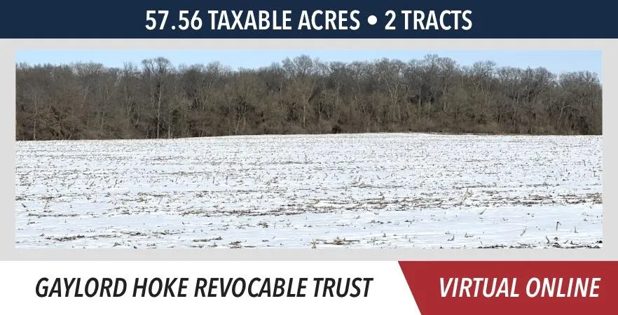 Immediately following the auction, the successful buyer(s) will be required to enter into a written purchase agreement with the seller and pay ten percent (10%) of the bid price as a non-refundable down payment. The balance of the bid price will be due at closing, on or before Monday, April 4, 2022. Bidding is NOT subject to the following contingencies, including but not limited to financing, appraisal, or inspection. The seller will provide title insurance in the full amount of the purchase price and pay the 2021 real estate taxes, due and payable in 2022. Possession will be given at the time of closing, subject to a cash rent lease for the 2022 crop year only - the new buyer will receive 100% of the cash rent income - contact the auction company for details.