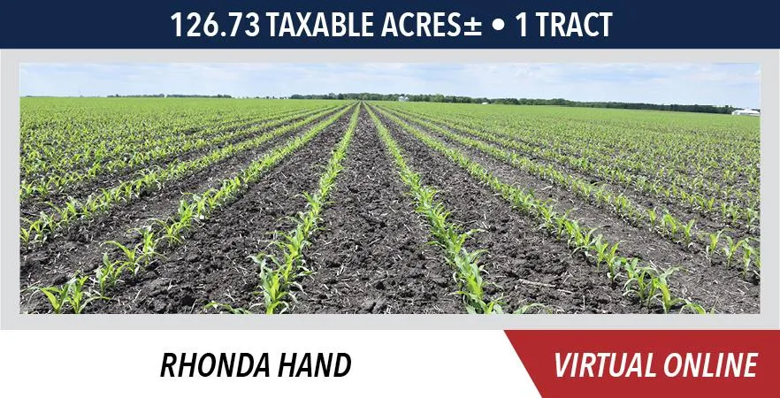 The Rhonda Hand farm real estate is located 2 miles south of Industry, IL along the east side of Highway 67 (11 miles south of Macomb, IL or 12 miles north of Rushville, IL). The property is further described as being in part of Sections 26 & 35, T4N-R2W, Industry Township, McDonough County, IL.