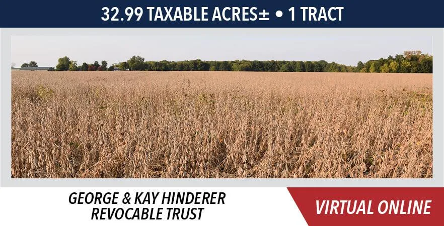 The Hinderer farm is located approximately 2 miles east of Colchester, IL, or 6 miles west of Macomb, IL. The farm is further described as being located in Section 17, T5N-R3W, Colchester Township, McDonough County, IL. The property contains a total of 32.99 taxable acres, will be sold in 1 tract, and offers highly productive Class A soils. Farmers, investors, and home builders take a look at this McDonough County, Illinois property.