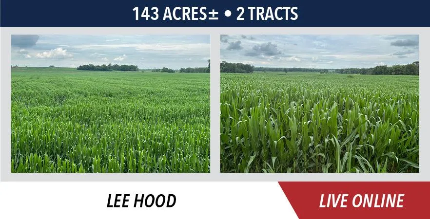 The Hood real estate will be sold on a price per acre basis, based on surveyed acres. Both tracts will be offered through the marketing method of Buyers Choice, whereas the high bidder can elect either or both tracts for their high bid. If the high bidder does not elect both tracts, then the remaining tract will be offered. The tracts will NOT be offered together or in their entirety at the conclusion of the auction.