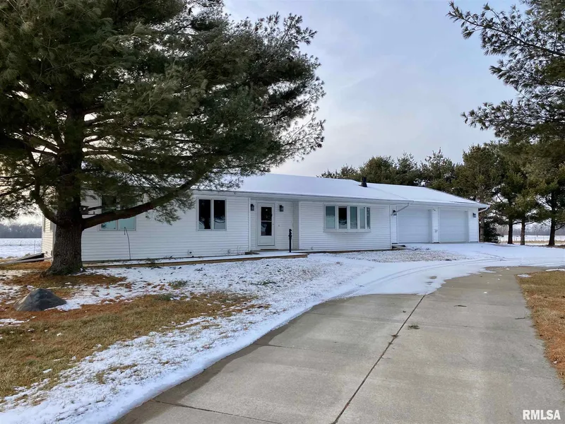 This Ranch home located six miles south of Macomb on 3 acres offers many great updates and many great features. The main level of the home has a living room updated with laminate flooring, wall of built-ins with gas fireplace, a den, custom kitchen with beautiful gray cabinets and quarts counter tops, dining area with walk-out to a deck with views of the western countryside, a master bedroom with on suite bath, two other bedrooms and full bath, all updated. This home has a full unfinished basement for lots of storage or room to expand living space and 27x28 attached garage. Also included on the property are two outbuildings, one is 60x30 with two 7 overhead doors and one 9 door and the other building is 30x30 with one 10 overhead door. All this with concrete drives to the outbuildings and the home. So, if you are looking for a wonderful home and a shop/storage buildings look no more.