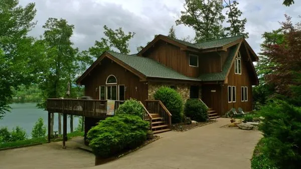 This Lindal Cedar Home has incredible lake and mountain views. Soaring cathedral ceiling with floor to ceiling windows showcase the view. Private master suite with office nook on 2nd floor. Open and bright kitchen with sitting area and doors to wrap around deck. Guest suite w/ private bath on main level. Lower level has 2 large bedrooms with views, hall bath and oversized 2 car garage. Exterior of home is cedar and stone. Inviting entry with Koi pond and waterfall. Quiet patio below deck with great landscaping. Community boatslip just across the street.
