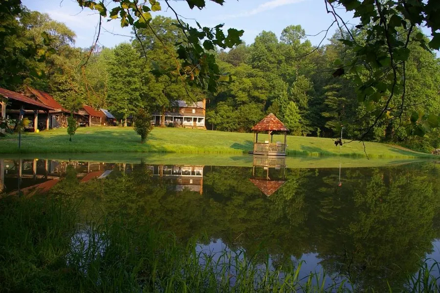 PRICE REDUCED! Currently an income producing ecological retreat, this 92 +/- acre farm includes 5 secluded cabins and 2 historic homes. Each cabin is fitted with fireplaces and hot-tubs! Conveniently located within just 45 minutes of Asheville, NC and TRYON INTERNATIONAL EQUESTRIAN CENTER! This estate offers 10 +/- acres of pasture land, natural creeks, over a mile of roads and hiking trails, 3 fishing ponds with overlooking gazebos, and much more! For more pictures and information, visit . The main house, The Albertus Ledbetter House, is listed on the National Register of Historic Places, and is a rare surviving and intact transitional Federal/Greek Revival style dwelling located in the mountains of western North Carolina. Built in 1826, the two-story, gable-sided house of post and beam construction remains one of a few intact dwellings from the early nineteenth century in McDowell Coun...