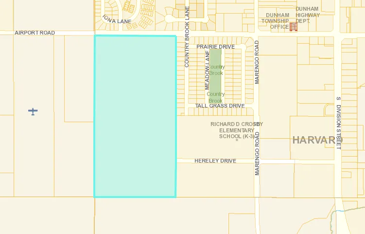 Excellent 80 acre parcel located in the path of future growth. Very consistent & productive soils consisting of Waupecan & Troxel silt loam. Nearly 100% tillable and adjacent to Richard Crosby School with municipal sewer and water nearby. Access from both Airport Road and Hereley Dr. This is a tremendous investment parcel. Property is zoned A-1 in McHenry County presently.