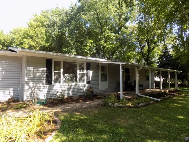 2.5 wooded acres with totally renovated ranch sitting waaaay back from the street. Refinished hardwood floors in living room and hallway. Kitchen has porcelain flooring, glass tiled backsplash, granite countertops, and all new stainless appliances. Both baths brand new with quality features. New carpeting in bedrooms. The whole interior has skip trowel textured ceilings and walls. Windows 7 years (except bay window in front is brand new) as are the furnace and air conditioner, and roof is 9. The whole exterior has just just been vinyl sided. Fourth bedroom and roughed in for third bath in the basement, as well as a sauna! Three season porch off the master bedroom. Covered front porch and deck in the back. All this in Riley school district, and animals allowed!