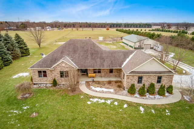 STUNNING 5+ ACRE PROPERTY ~ CUSTOM 2,400 SQ FT RANCH ~ LARGE BEDROOMS ~ PELLA WINDOWS ~ 10 FT CEILINGS THROUGHOUT ~ PARTY SIZED STAMPED CONCRETE PATIO ~ 2 STONE WOOD/GAS FIREPLACES ~ HUGE 43 X 23 RECREATIONAL BASEMENT ~ FRESHLY PAINTED AND NEW KITCHEN COUNTER TOPS ~ OVER SIZED HICKORY CABINETS AND ISLAND ~ PROFESSIONALLY LANDSCAPED ~ HUGE 3 CAR GARAGE W/ PIPED RADIANT HEAT AND INSULATED WALLS ~ 4,000 SQ FT CLEARLY BARN W/ 5 MATTED HORSE STALLS ~ INSULATED (R42) TACK ROOM W/ WATER ~ COME & TAKE A LOOK AT PERFECTION!