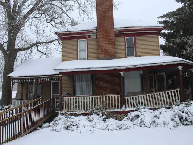 Calling all investors and/or handymen looking for flip. Income potential with small town charm. For convenience, each floor has individual gas & electric meters. Master bedroom & fireplace on first floor. Home has 4 bedrooms & full baths on each floor. Also features a covered wraparound front porch. Newer roof & ceilings on the 2nd floor. Property is sold in as-is condition with taxes prorated at 100%.