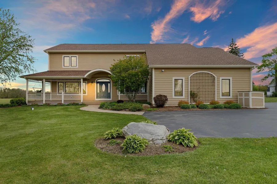 Welcome to 2220 Barreville Rd - located in an incredibly tranquil part of Southern McHenry; this gorgeous, 4200 sq ft custom-built home sits on 9.8 captivating acres of land. Get plenty of land and privacy, without sacrificing location! Upon arriving at the property, you'll notice plenty of open lands, the home's incredibly spacious 3 car garage, and a 17x20 storage shed. Heading into the home, you'll be greeted by a delightful amount of natural light, large and open living spaces, and a custom layout that makes you feel truly at home. The kitchen offers brand new countertops, double ovens, a built-in cooktop, and a huge center island that allows the chef of your home to hone their craft freely without any interference. Opening to the kitchen is the absolutely stunning great room: equipped with hardwood floors, a wood-burning fireplace, a two-story ceiling, and unforgettable floor-to-ceiling windows. Aside from the kitchen and great room, the main floor offers first-floor laundry, both a full and half bathroom, a bedroom (perfect for an in-law arrangement), a home office for those working from home, and of course, the cozy 4 seasons room with fabulous views of the property and access to your Trex deck. Moving upstairs, you'll find a freshly carpeted main hallway, 3 generous-sized spare bedrooms, an additional full bathroom, and of course the master suite. The master suite has a huge walk-in closet with built-in shelving/racks, a full bathroom with a jacuzzi tub, a standing shower, and his/her sinks. Bring your finishing ideas or storage needs to the basement with a 9ft pour, immediate walk-out access to the garage, strategically tucked away mechanicals, and another wood-burning fireplace; the possibilities are truly endless. This home has easy access to Rt 31, Northwestern Hospital, the Fox River, and is surrounded by conservation/park land. Come see this rare opportunity of a home before it's too late!