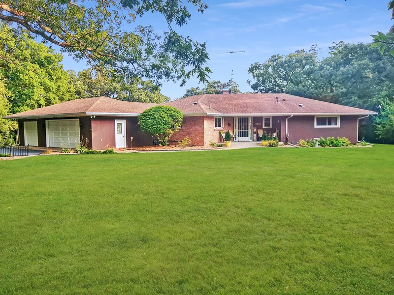 **Multiple offers received. Please submit all offers by 6pm Sunday 8/15** Your meticulously cared for, newly updated ranch home feels like a private country retreat on a serene park-like 2 ACRES overlooking farmland. A corner wall of windows in the living room looks out onto your scenic, private, fully-fenced backyard and brick paver patio. Your new home boasts 3 large bedrooms on the main floor with an additional 4th bedroom in the basement. 2 newly renovated bathrooms on the main floor including a primary ensuite, spa-like soaking tub in 2nd updated bathroom, and an additional half bath in the basement. Some highlights of your new home include a HUGE 3-car garage, finished basement, professionally landscaped low-maintenance yard, fully fenced-in backyard, water softener, newer roof, skylights, LOTS of closet and storage space, new laminate floors, 2 gas fireplaces, and an updated farmh...