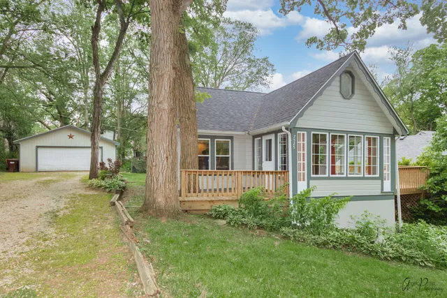 Picturesque and Darling! This turn key home has been beautifully prepared for the buyer. Gorgeous Dark Wood Beams and Surrounding Windows give this home so much Modern Farmhouse Charm. Rich Laminate flooring and pristine carpet throughout this freshly painted home. Open floor plan allows for versatility and flexibility for Kitchen and Living Room Seating. Laundry conveniently located right off the main living space. Upstairs is a spacious Master Bedroom or bonus room if you'd prefer to have your bedroom on the first floor. Step outside and enjoy gorgeous views of Wonder Lake Winter, Spring and Fall. When the trees are in full bloom the foliage is just as gorgeous. The wrap around deck is perfect for entertaining and enjoying the peaceful beauty. The Oversized Two Car Garage is perfect for boats, cars and more. This home is ideally set back on a double lot. Crawl space is a large enough t...