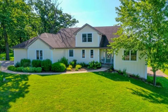 MODERN FARM HOUSE FEEL THROUGHOUT 4.1 ACRES * 5 BEDROOMS * 3013 SQ. FT. * 3 CAR GARAGE * NEW LP SIDING * TWO STORY FAMILY ROOM FLOOR TO CEILING BARN WOOD WALLS WITH STONE WOOD BURNING FIREPLACE * NEW PAINT & TRIM THROUGHOUT ENTIRE DOWNSTAIRS * KITCHEN WITH WHITE CABINETS, QUARTZ COUTERTOPS AND BLACKSPLASH * 42 INCH KITCHEN SINK * MINI FRIDGE * 5 BURNER STOVE WITH CUSTOM WOOD HOOD RANGE * OPEN TO THE EAT IN AREA * CUSTOM BUILT DINING BENCH *HEARTH ROOM WITH COZY FIREPLACE * 1ST FLOOR MASTER SUITE * SPA BATH WITH SOAKER TUB, SEPARATE SHOWER, DBL BOWL, WALK IN CLOSET * 1ST FLOOR WORK OUT ROOM * FULL PARTIALLY FINISHED WALKOUT BASEMENT WITH PRIVATE BEDROOM & CUSTOM CABINETRY IN THE WALK IN CLOSET *3 OVERSIZED BEDROOMS ON 2ND FLOOR & 10 X 7 STORAGE ROOM UNDER THE EAVES* NEW 12OO SQ.FT. CUSTOM LIGHTED AZEK DECK WITH BUILT IN HOT TUB * 500 SQ.FT. STORAGE UNDER DECK * 800 SQ.FT. BRICK PATIO * 1ST FLOOR LAUNDRY ROOM * MUD ROOM * 36" INTERIOR DOORS * HARDWOOD FLOORS * FENCED CHICKEN COOP * TREE HOUSE *ZIP LINE * NO NEIGHBORS BEHIND OR TO THE SIDE * CUL-DE-SAC LOCATION * DISTRICT 158 HUNTLEY SCHOOLS * NO HOA * DUAL ZONED HEAT/AC * BRINKS ALARM SYSTEM, NUMBERIC FRONT DOOR ENTRY, INTERIOR CAMERA, MOTION DETECTOR, GLASS BREAK SECURITY* AGENT OWNED Included: hot tub and chicken coup Not included: wood shelf in kitchen with black brackets, picture hanging pipe in living room, towel racks in master bath and wood shelf in upstairs bathroom.