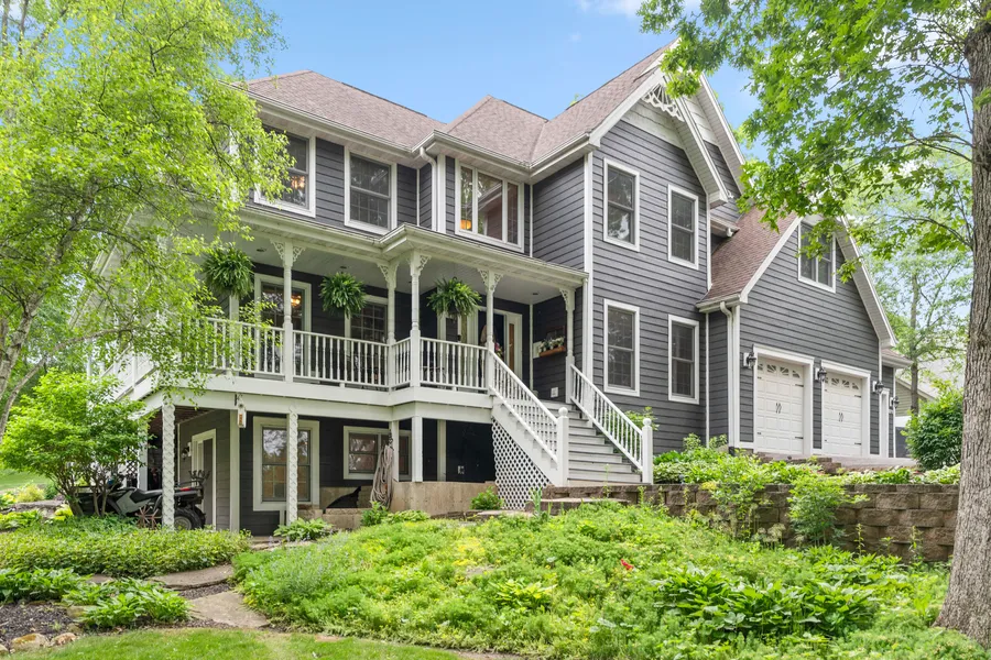 Welcome to your Tranquil Haven! This exquisite home, set on just over 1 acre, features 6 bedrooms, an office, and 3.5 baths. The 3-car garage with side port and newer Hardie siding adds both functionality and curb appeal. Ideal for entertaining, the outdoor area includes a built-in grill, waterfall, pergola with a fireplace, and professionally designed landscaping, all amidst abundant wildlife in your backyard. Inside, the beautiful kitchen boasts stainless steel appliances, granite countertops, and a cozy eating area. The living room invites relaxation with its floor-to-ceiling stone fireplace. The master suite offers a private retreat with its own fireplace, sitting area, large walk-in closet, and a newly remodeled bathroom with a whirlpool tub and tiled shower. On the second floor, you'll find 3 additional spacious bedrooms and a fully updated bath with double sinks. The dual staircases add a touch of sophistication. The finished walk-out basement expands your living space, offering an extra bedroom, an optional sixth bedroom, a full bathroom, a family room, and a rec room. Completing this remarkable home is a partial wrap-around porch, perfect for enjoying the tranquil surroundings. Home warranty included!