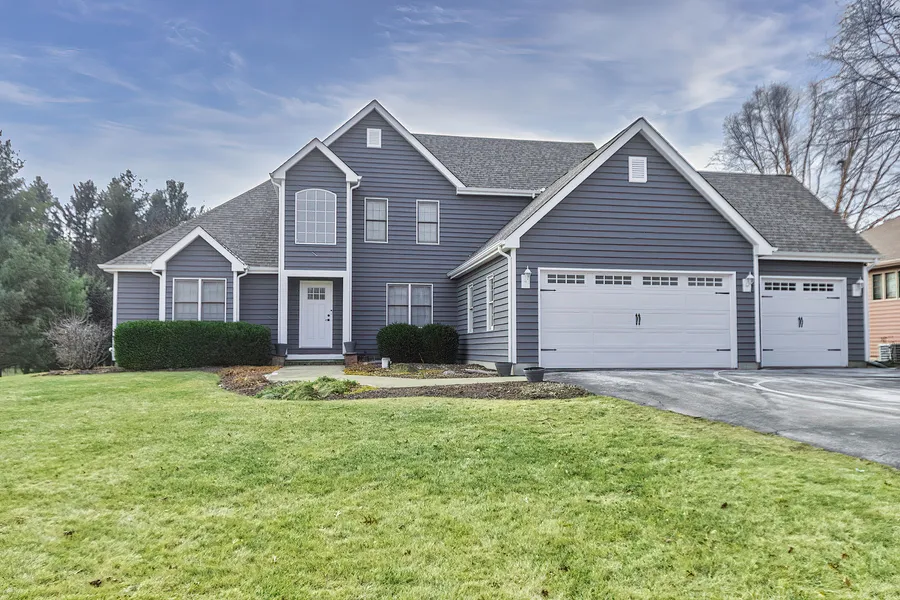 Simply Stunning, describes this breathtaking contemporary two-story home nestled on a generous .73 acres of serenity! Prepare to be captivated by the picturesque views and the unparalleled privacy provided by the lush woods that serve as your backdrop. As you step inside, you'll immediately be enchanted by a unique floor plan that masterfully blends open concept living with delightful room divisions. The first space is incredibly versatile-use it as a dining room, a cozy living area, or a productive home office; the choice is yours! The recently remodeled kitchen is a dream, boasting a spacious butcher block island and ample room for a dining table, all while offering lovely views of your backyard oasis. The family room is a haven of comfort, featuring soaring vaulted ceilings and a stunning fireplace that invites warmth and relaxation. Conveniently located off the three-car garage, you'll find a generous laundry room complete with a sink, as well as the nearby half bath. Retreat to the first-floor master bedroom, which offers two walk-in closets and a luxurious full bath equipped with a walk-in shower and a soothing jetted tub-perfect for unwinding after a long day! Ascend to the second floor, where you'll discover three inviting bedrooms and a full bathroom. Two of these delightful bedrooms come equipped with spacious walk-in closets, ensuring everyone has ample storage. The finished basement is an entertainer's paradise, featuring a recreation room with a custom wet bar and a family area that perfectly accommodates game nights. Additionally, a fifth bedroom is strategically located near the full bathroom, offering flexibility for guests or family. Step outside onto your expansive deck, where you'll find an outstanding setup for grilling and entertaining. The pergola gracefully covers a sparkling saltwater hot tub, strategically placed to soak in those stunning views. The outdoor space is completed with a fire pit and a handy shed, making this home the epitome of comfort and convenience. Updates abound in this home with a new roof installed in 2022, a state-of-the-art on-demand hot water heater in 2024, and fresh paint along with new garage doors in 2020. The furnace and AC were new in 2018, and the home underwent a fabulous rehab in 2015, featuring new flooring, trim, and doors. The kitchen was beautifully remodeled in 2018, making this residence truly move-in ready! Don't miss your chance to experience this home that truly checks all the boxes!