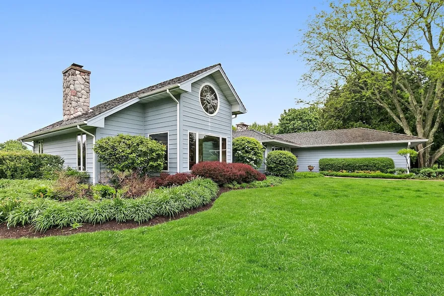 Absolutely fabulous 5+ acre property in Barrington Hills that includes a beautiful ranch home with a finished walkout. Drive down the meandering driveway bordered by apple trees. This home has an updated kitchen with top-of-the-line stainless steel appliances, granite counters on the center island, custom cabinets, etc. The spacious dining room is off the kitchen and is perfect for your family dinners. The great room has a soaring cathedral ceiling, a gorgeous two-story stone fireplace, a wet bar, and built-in shelving. Off the great room is the office with three walls of windows and a stunning view of the property along with the 2000 square foot tri-level deck. Three bedrooms are on the main floor, which includes the primary bedroom. The primary has a walk-in closet and an attached primary bath with a separate shower and tub. The lower level has lots of space and includes two...