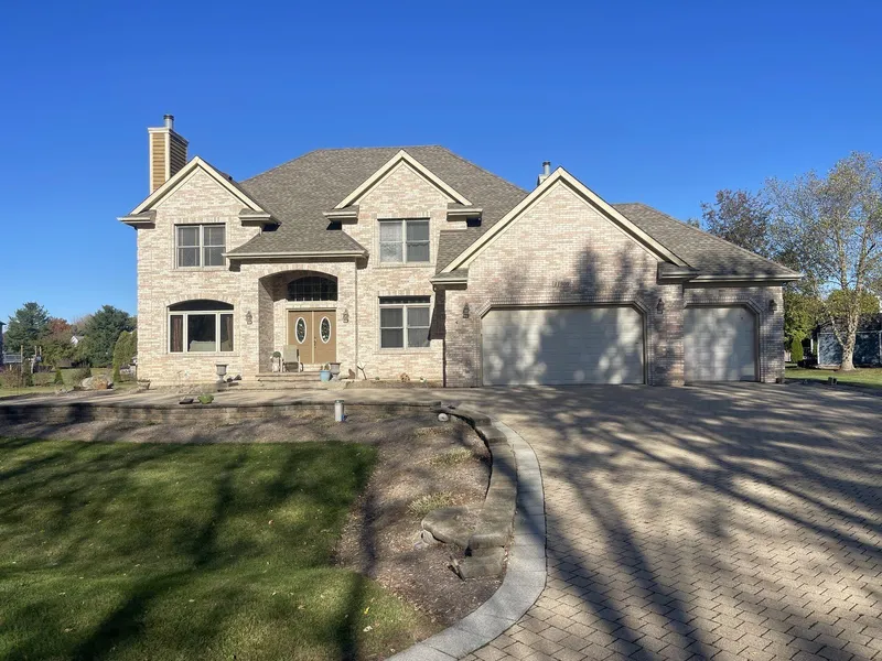 **Beautiful Custom 2-Story Brick & Cedar Home situated on just over 1 acre lot** This elegant residence offers 4 bedrooms plus a loft, office, and 5 full baths ~ Step into the grand marble-tiled foyer with a dramatic open-to-second-floor design. The living room boasts a welcoming gas fireplace and flows seamlessly into the private dining room and gourmet kitchen ~ The kitchen showcases 42" tall maple cabinetry, prep island, a convenient coffee/desk area, and a breakfast bar. Enjoy casual meals in the bright table area, which opens to the family room with its own cozy gas fireplace - ideal for gatherings and relaxation ~ 1st Floor Office with an adjacent full bath featuring a walk-in shower - perfect for guests or a home workspace ~Convenient 1st floor laundry/mud room ~Upstairs, you'll find 4 spacious bedrooms, a loft, and 4 full baths. The tray-ceiling primary suite includes a luxurious ensuite bath with a whirlpool tub, separate shower, and walk-in closet ~A pull-through paver driveway leads to a generous 3-car attached garage that has a pull down to oversized attic space available to be fished for extra living space ~ Home offers 9' ceiling on first floor, rough-in bath in full English basement overlooking a spacious yard, Large Deck and Trees view ~Desired located just minutes from Route 20 and major expressways for an easy commute ~ Newer Zoned Furnaces, Newer Center A/C unit , Newer Roof