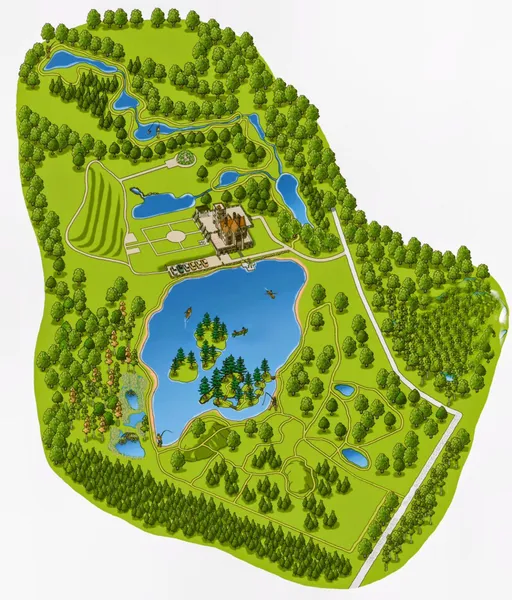 -7 Stocked ponds; 1 at 3/4 acre, 3 at 1/2 acre, 2 at 1/4 acre, 1 at 1/8 acre
