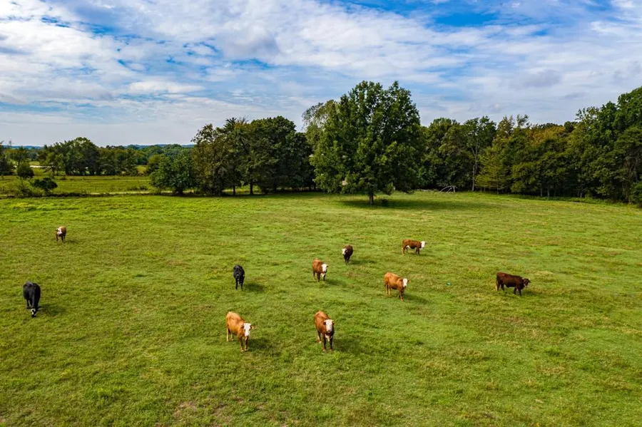 Take a look at this 550 +/- acre working cattle ranch with everything you need for a turn-key operation. Count them, 4 barns to keep all the equipment and toys, a 40'x100', 60'x70', 16'x40', and 48'x20'. Then consider the setup with 9 paddocks for rotational grazing, a hazing fence for gathering cows to the corral that includes catch and sort pens, working pens, and squeeze chute. With 14 ponds, 3 well stocked with a variety of fish, and multiple live creeks, there is an abundance of water no matter where the cows are. In mid-July, the grass was knee high with 120 pairs on the ranch. This ranch has carried as many as 200 pairs in past years.