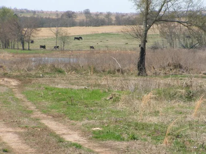 Great pasture for running cattle. Owner has done lots of clearing and improvements to land. PAVED RD. Located approximately 10 miles from Indian Nation Turnpike. Breath taking views for a new home. Abundant wild life such as deer and turkey. Property features large metal building