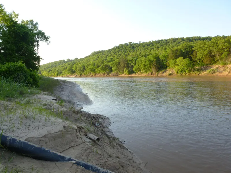Water: 1 pond and approx. 1 3/4 mile of frontage on the North Canadian River which is one of Oklahoma's major rivers spanning approx. 441 miles and flows through New Mexico, Texas and Oklahoma. Property is set up to irrigate out of the North Canadian River and is properly permitted.