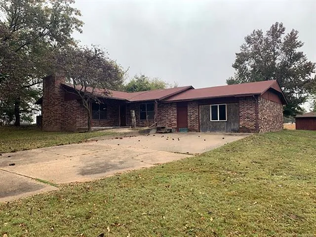 3 bed/2 bath brick home on 5+/- acres with large living area, fireplace, built-in bookcase and an unfinished enclosed garage. Home is sold as-is.