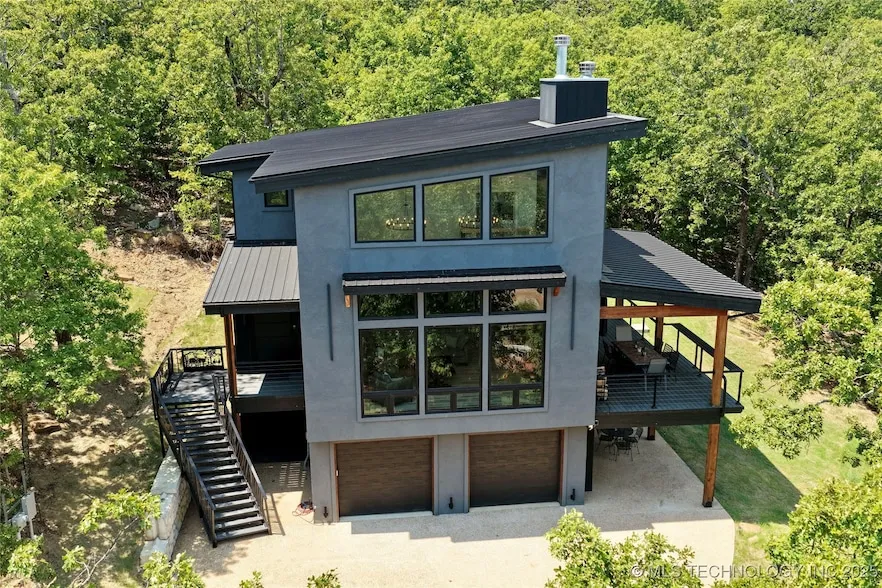 ENJOY LAKE EUFAULA, OK LIFE AT ITS BEST! in this brand new lake view home with fantastic year-round views of the lake. This newly built modern home sits on 1.45 acres and features an open-concept living area framed by a stunning wall of windows that floods the space with natural light. The home features four Bedrooms & four bathrooms, which is perfect for families or guests! There is also a unique bunk room with four custom-built bunk beds. Gourmet Kitchen is designed for both style and function, featuring granite countertops, a wine refrigerator, and views of the lake from the dining area. The second floor is dedicated to entertaining with a spacious living area, dining room, main suite, and utility room. The third floor offers two additional bedrooms and two bathrooms, including one with a loft view of the living area. There is plenty of space for outdoor entertaining! Enjoy barbecues on the large covered deck, relax on the side deck, or unwind in the hot tub on the covered patio, all while soaking in stunning lake views. Enjoy the serenity and relaxation of two fireplaces! One inside in the living space and one outside on the lakeside on the second story! Deer frequently grace the yard, enhancing the natural beauty of your surroundings. The purchase of a boat slip from the developer may be an option for the buyer. This luxurious home is currently set up for short-term rental, and the home can be purchased fully furnished for a seamless transition. A new remote control entrance is planned to be built in the near future, enhancing security and convenience for residents. Don t miss your chance to own this entertainer's dream home where every detail has been meticulously crafted for comfort and enjoyment. Click on the two virtual tours! View the aerial tour of the exterior of the home and then look inside for a 360 view of the interior. Then, call to schedule your private viewing!