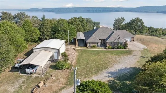 Gorgeous Lake Eufaula views year-round! This brick home features 4 bedrooms-2 bathrooms with 10' ceilings, screened in porch with Lake View, auto-start generator, shop with concrete floor, insulated & electric! ALSO included, additional lot that adjoins Corp land, optional boat dock with lift and 2021 Bass Buggy boat only used 4 times. New storm shelter, new roof. RV ready and many more extras included.